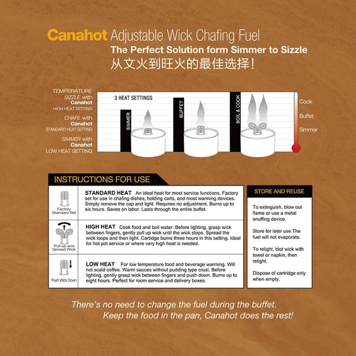 Для нашего топлива 200G DEG Wick Chafing Fuel, которое известно своей безопасностью и длительным горением, изменение высоты может привести к тому, что оно сгорит вначале немного быстрее. Однако, поскольку это хорошо разработанное топливо, оно по-прежнему сохраняет относительно стабильное горение с течением времени. 6-часовое топливо для перетирания фитиля, как следует из названия, рассчитано на длительное горение. На больших высотах он может длиться не ровно шесть часов, возможно, сократится на 30 минут-час, но он все равно обеспечивает приличное количество тепла для вашей горячей кастрюли.